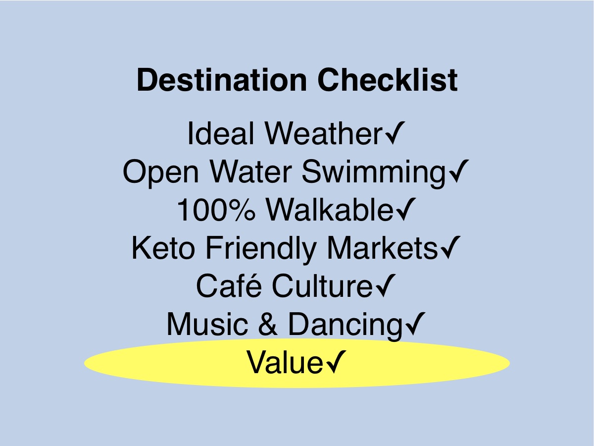 Value is on my Checklist because destinations may score well in all other six categories but have more or less Value depending on how expensive they are.