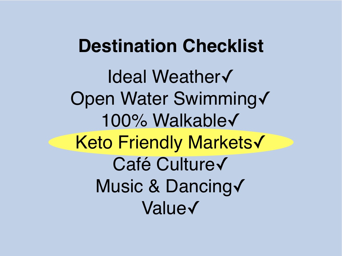 This post is about choosing slow travel destinations with Keto Friendly Markets.