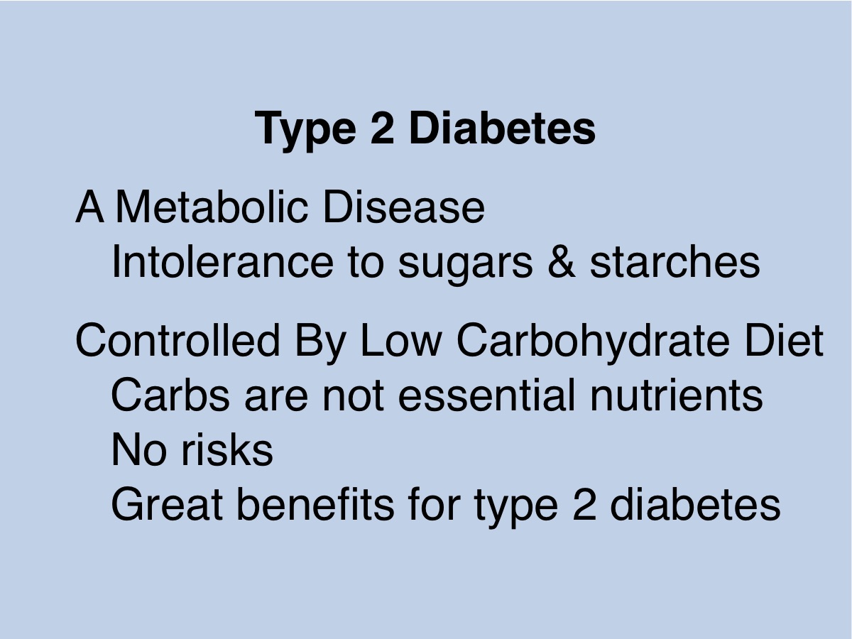 Everyone’s health and approach to health care and diet are unique.  There are many types of dietary diseases and treatments.  I am fortunate to not suffer from alcoholism, lactose intolerance, celiac disease, nut allergies or any of the many other types of metabolic and immunologic diseases related to diet.   My body simply cannot tolerate dietary sugars and starches.  I am fortunate that there is a simple cure – not eating sugars and starches.  I am fortunate that carbohydrates are not essential nutrients.  I am fortunate there are no risks and great benefits from not eating sugars and starches just as there are no risks and great benefits to not consuming alcohol for alcoholics, gluten for celiac disease and so forth.
